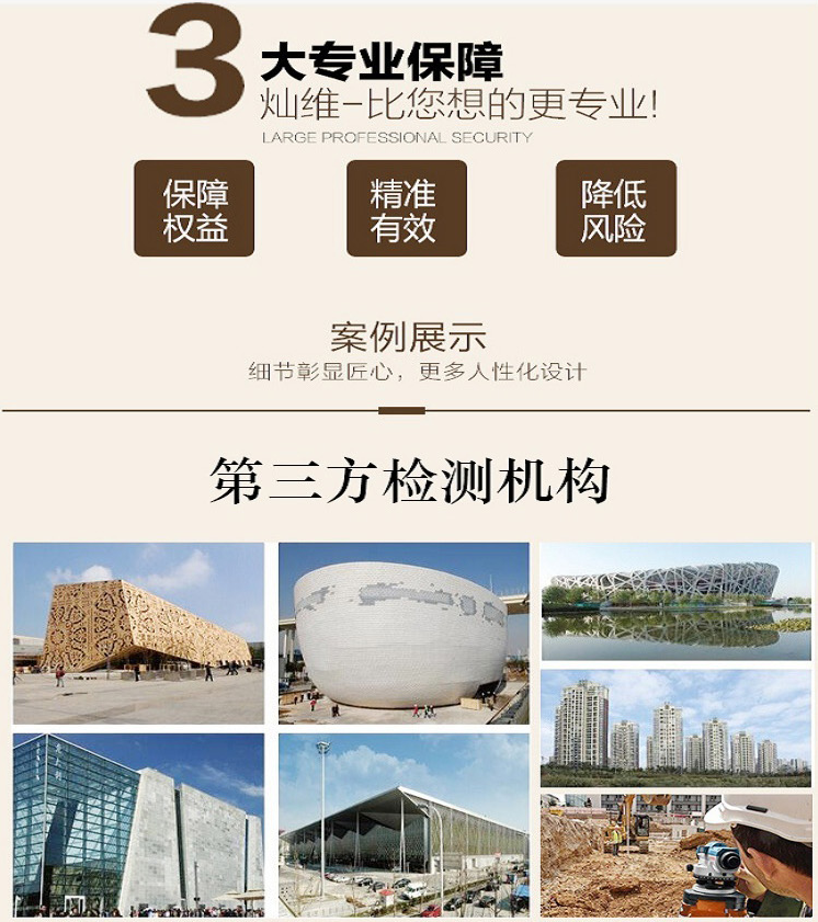 我公司業(yè)務(wù)范圍:主體結(jié)構(gòu)檢測;地基基樁檢測;無損檢測;房屋安全鑒定;工業(yè)及民用建筑物可靠性鑒定;公路工程檢測;熱控、電氣儀表檢測;建筑及工程材料、結(jié)構(gòu)工程質(zhì)量檢測技術(shù)的開發(fā)、轉(zhuǎn)讓及服務(wù);建筑節(jié)能檢測;室內(nèi)環(huán)境檢測;建筑材料見證取樣檢測;防雷裝置檢測;玻璃幕墻檢測;建筑智能化工程、設(shè)備安裝工程、鐵路工程、鋼結(jié)構(gòu)工程的檢測;特種設(shè)備(塔式起重機、升降機)的檢測;建筑工程質(zhì)量檢測;計量檢測與校準(zhǔn);建筑工程測量;測繪服務(wù);隧道檢測;工程勘察;消防工程檢測;毛呸房驗房;精裝房驗房。